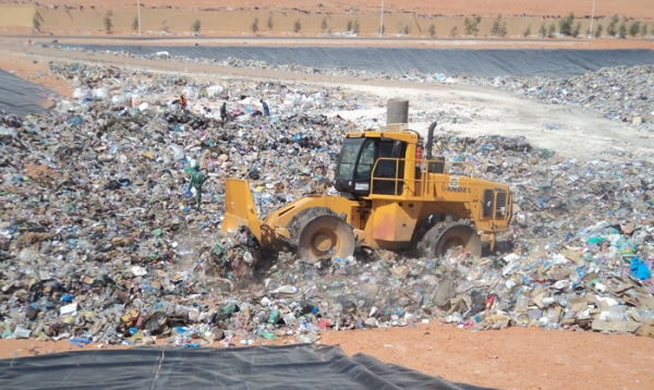 ضغط ودفن مكبات النفايات.